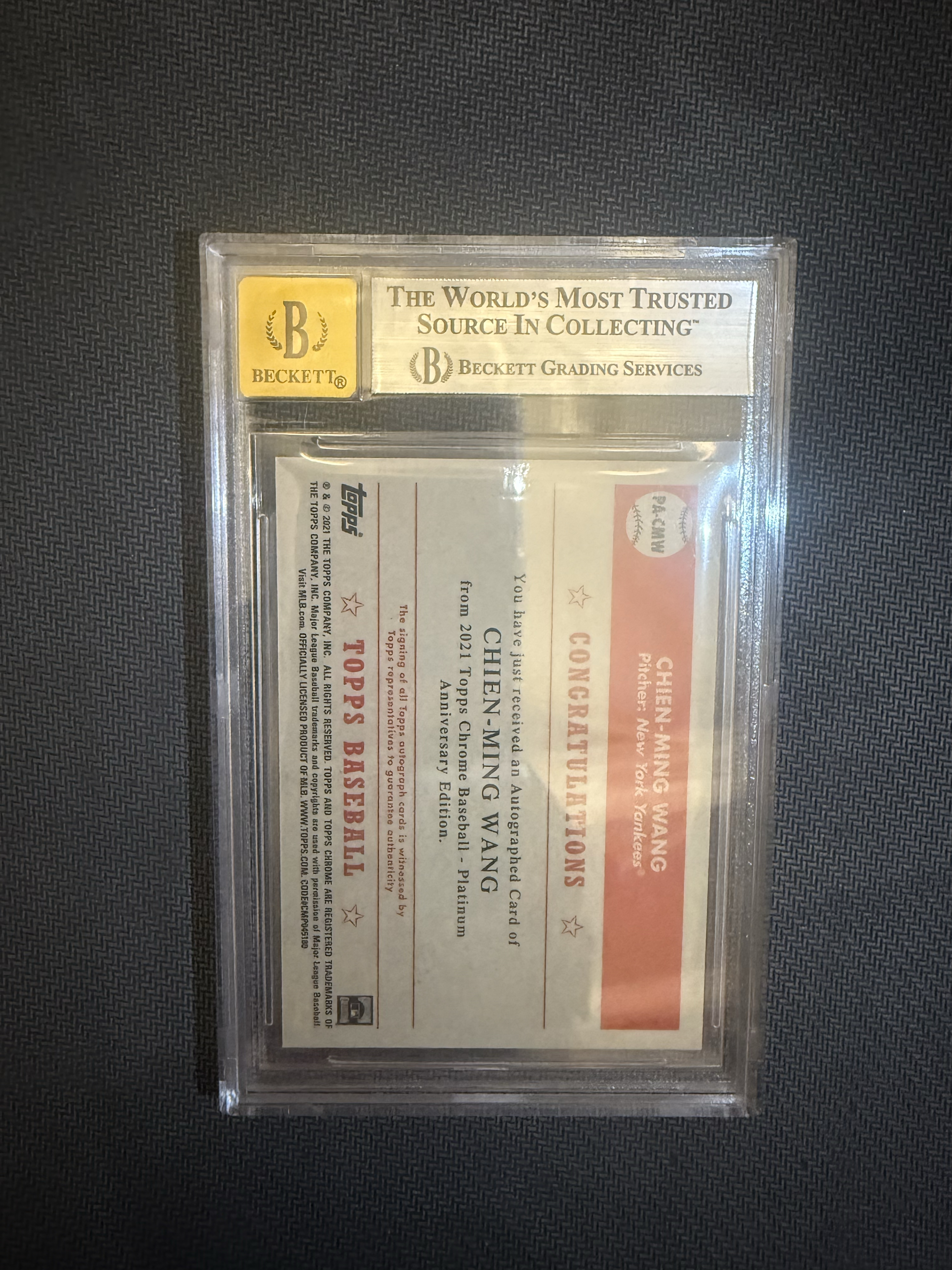 2021 Topps Chrome Wang Chien-Ming 王建民 签字 签名 卡签 BGS9 Auto10分 纽约扬基【只发顺丰寄付不累计】