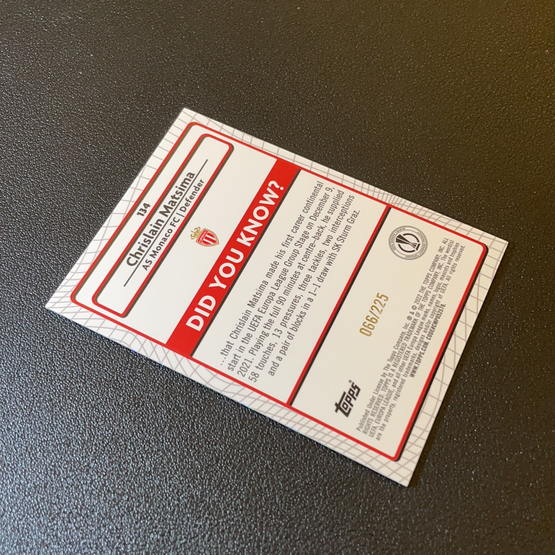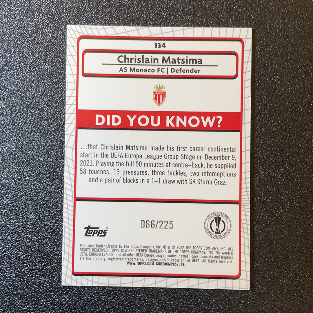 2022 Topps Merlin Chrome Chrislan Matsima RC 克里斯兰 马奇马 奥格斯堡 摩纳哥 新秀 66/225编 黄波纹折 折射 欧冠 梅林 轻印-SYEEER