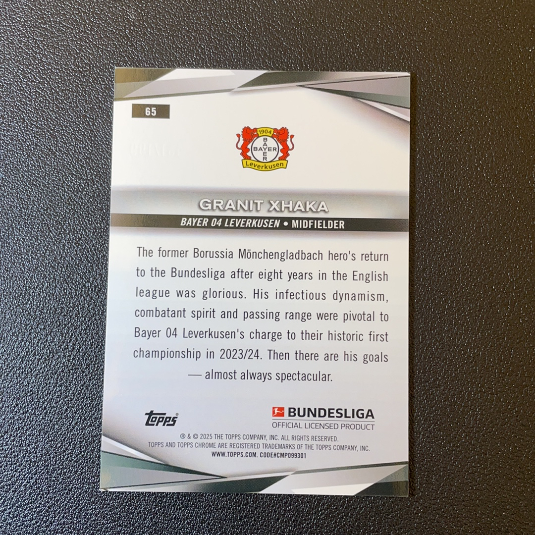 2024-25 Topps Chrome Granit Xhaka 格拉尼特 扎卡 瑞士 勒沃库森 199编 粉折 Bundesliga 德甲TC 收藏必备 轻印 -SY6476