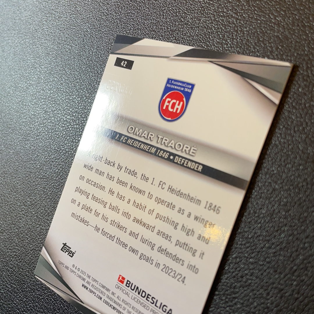 2025 Topps Chrome omar traore 德甲TC 奥马尔 特奥雷 海登海姆 250编 绿折 收藏必备 轻印 -SY6476