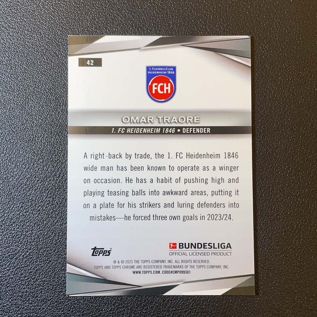 2025 Topps Chrome omar traore 德甲TC 奥马尔 特奥雷 海登海姆 250编 绿折  收藏必备 轻印 -SY6476