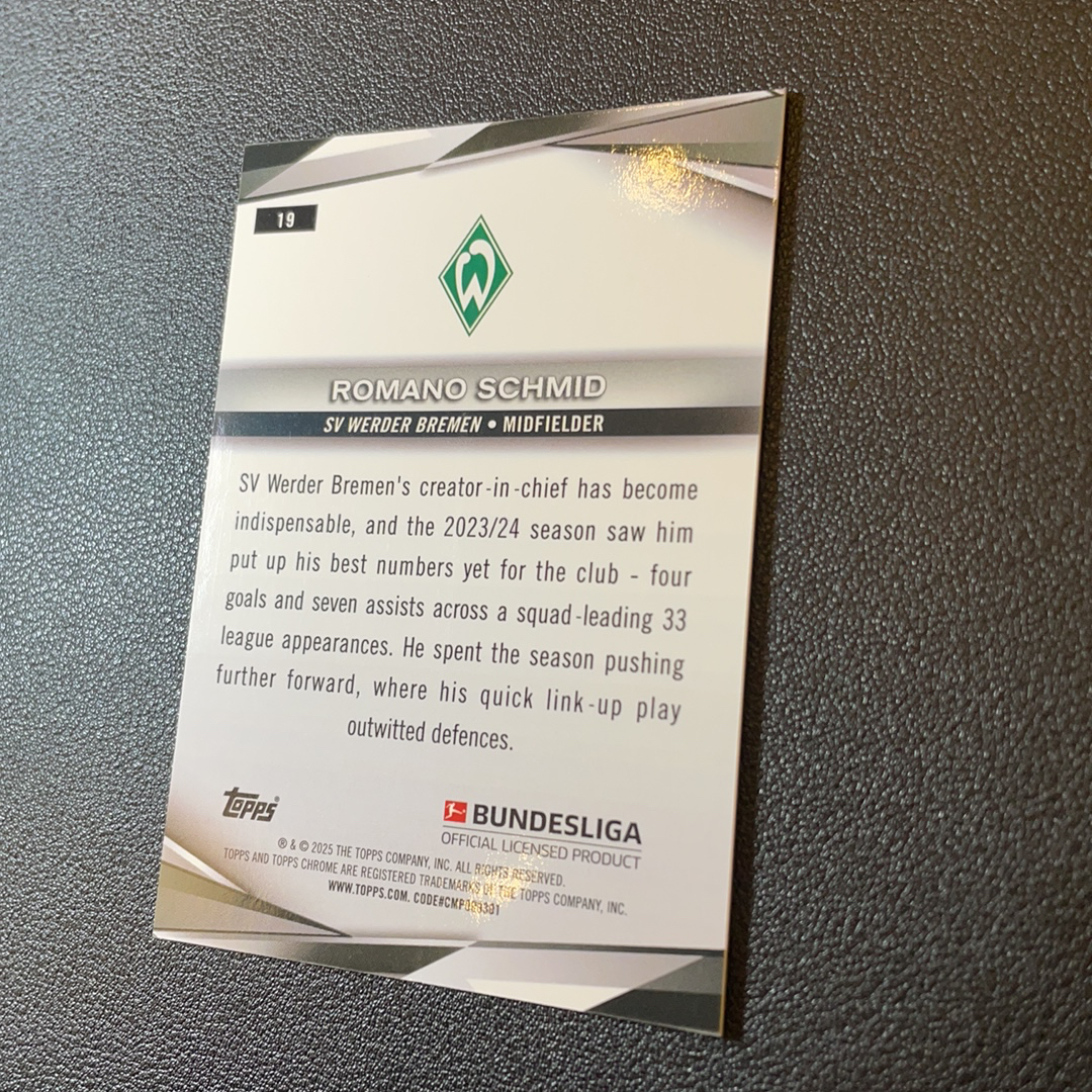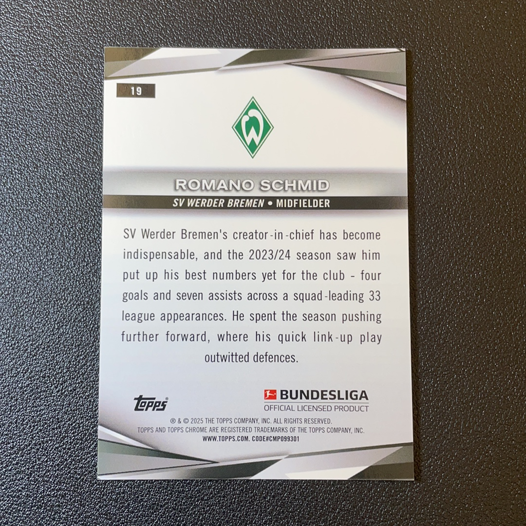 2025 Topps Chrome schmid 德甲 chrome 云达不莱梅 罗马诺 施密德 青折 175编 收藏必备 轻印 -SY6476