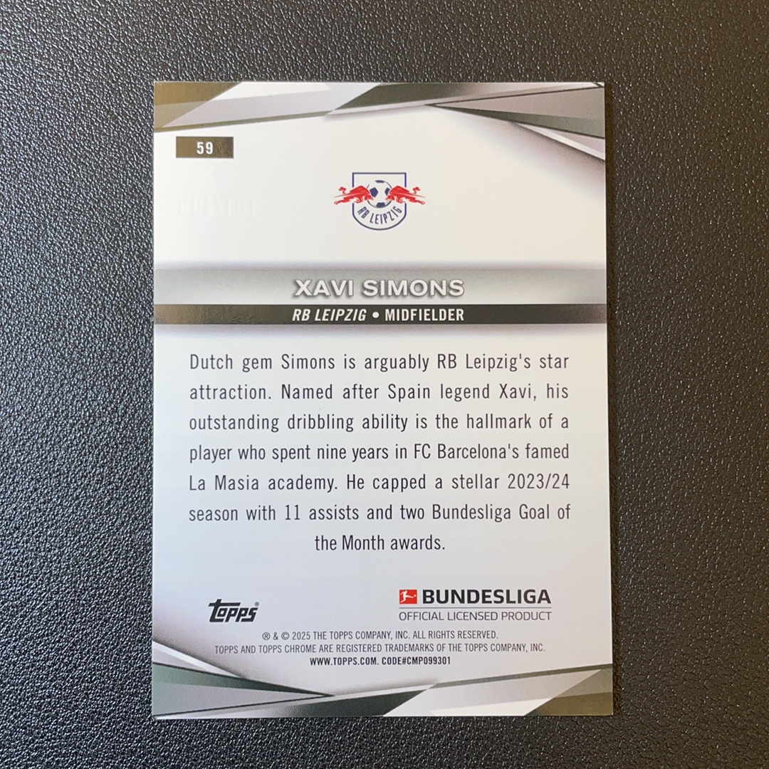 2024-25 Topps Chrome Xavi Simons 哈维 西蒙斯 荷兰 热刺 RB莱比锡 Base 199编 粉熔岩折 Bundesliga 德甲TC 轻印 -SY6476