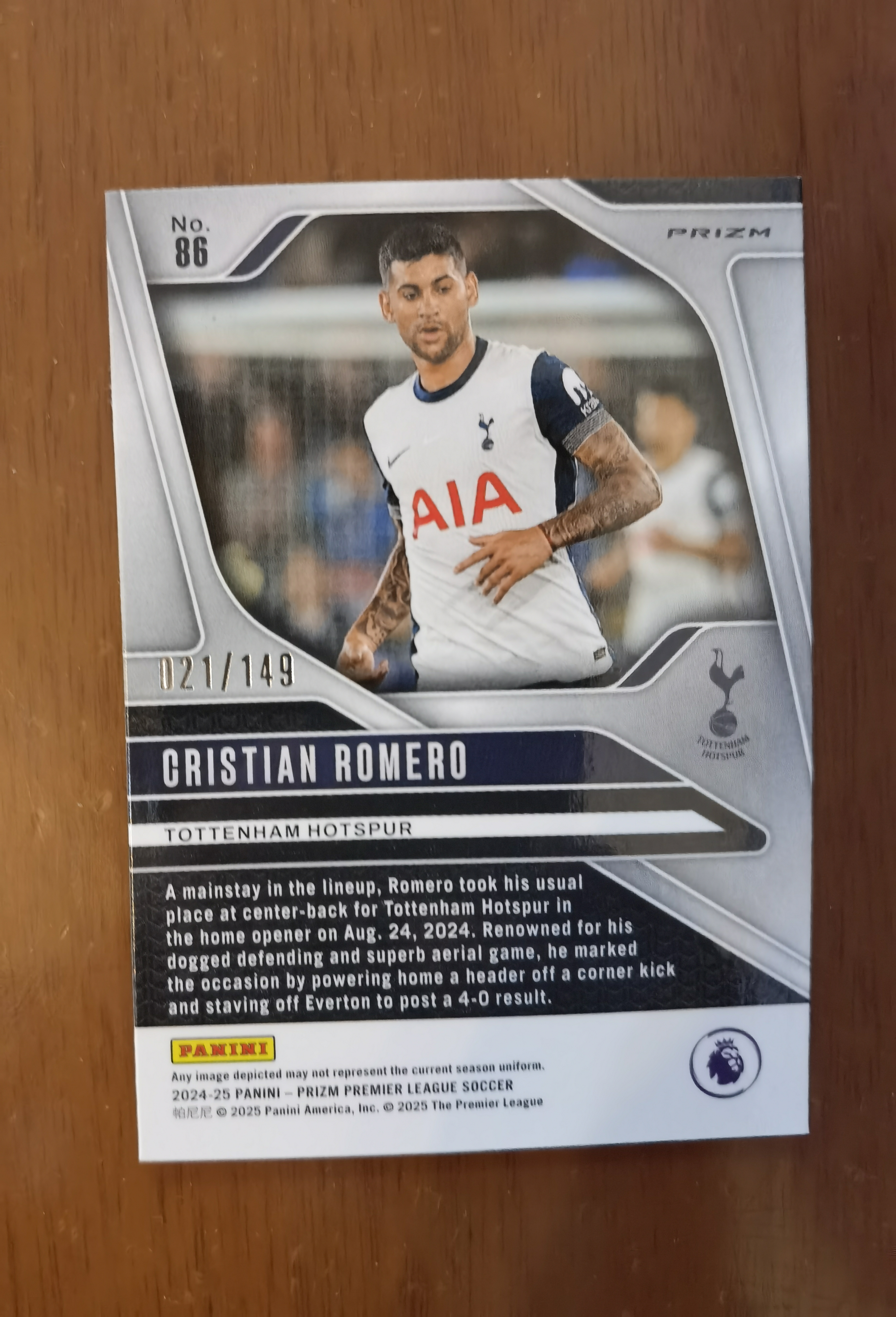 2024-25 Panini Prizm Cristian Romero 里斯蒂安 罗梅罗 热刺 阿根廷 英超 PZ /149 粉泡泡折 卡品如图 拍前看描述