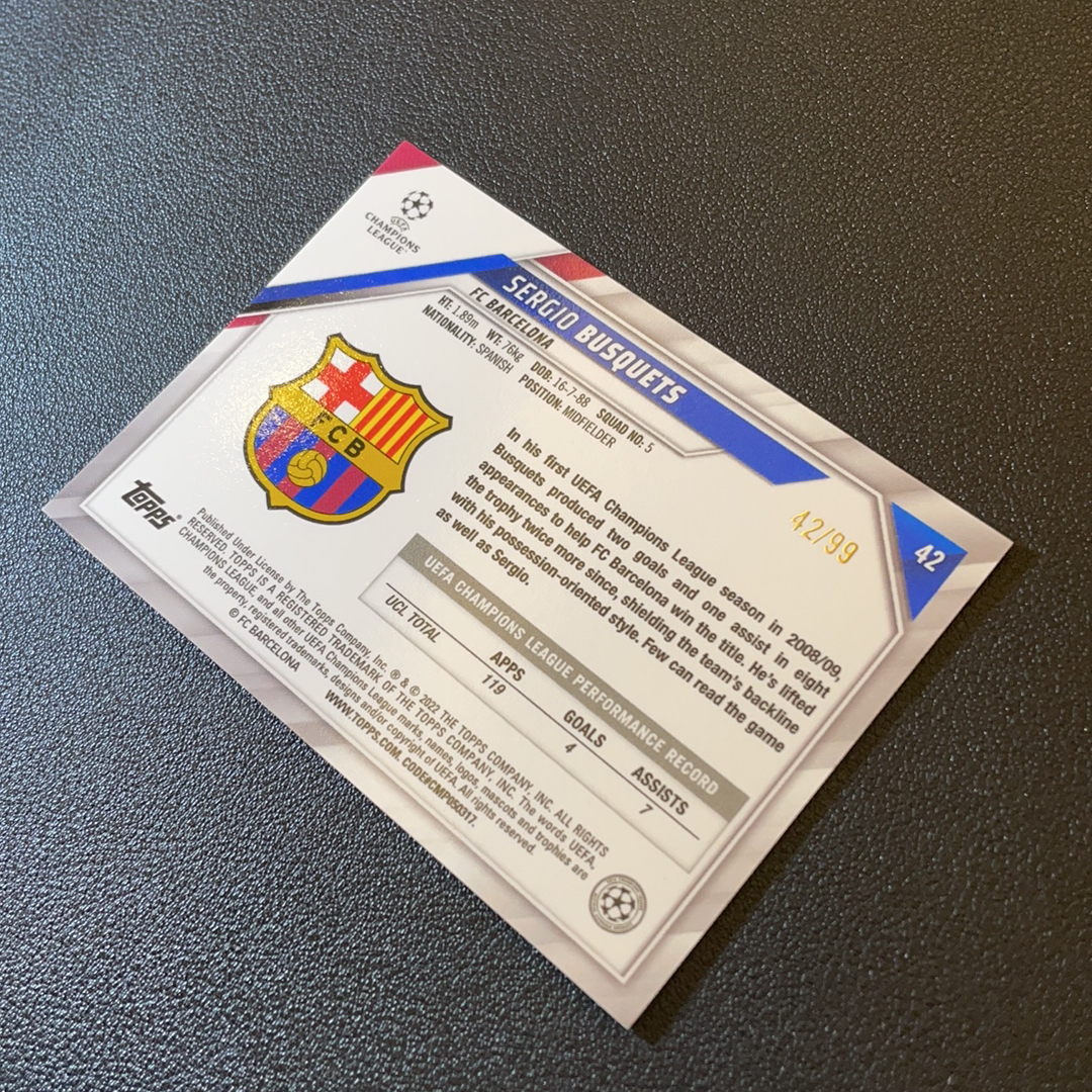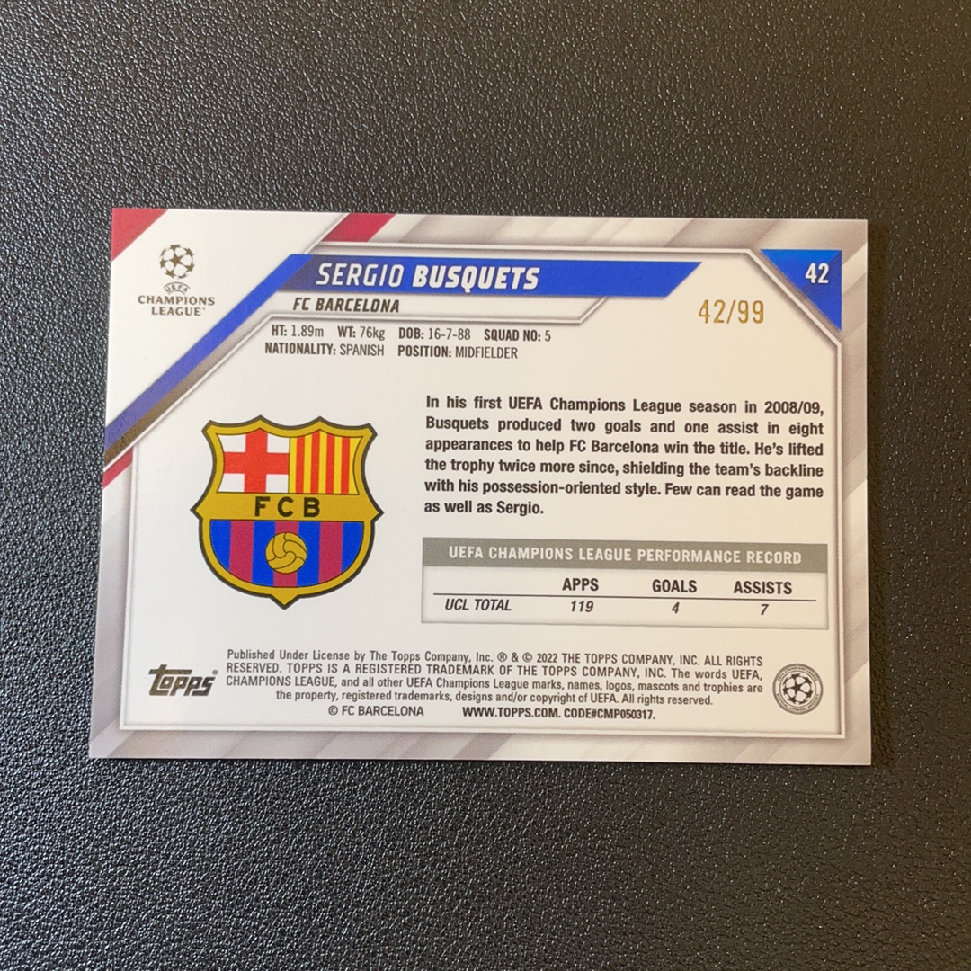 2022 Topps Chrome Sergio Busquets TC 蓝宝石 布斯克茨 巴萨 黄碎冰折射 99编 折射 限量 专收必备 轻印-S00009