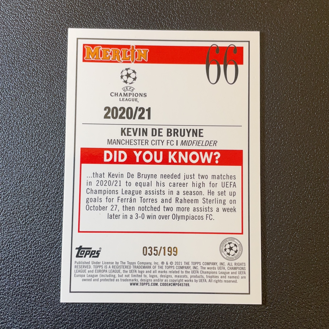 2020-21 Topps 元年 欧冠 梅林 Merlin Kevin De Bruyne 德布劳内 曼城 比利时 那不勒斯 199编 少见 轻印-SY5332