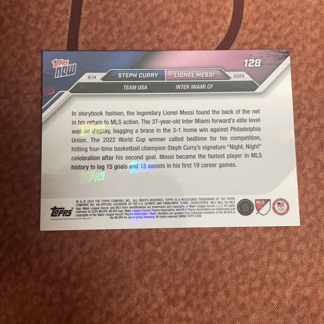 2024 Topps now 奥运会 库里 梅西 迈阿密 双人 决赛 晚安选图 卡品微瑕 介意勿拍 收藏必备(ARS)
