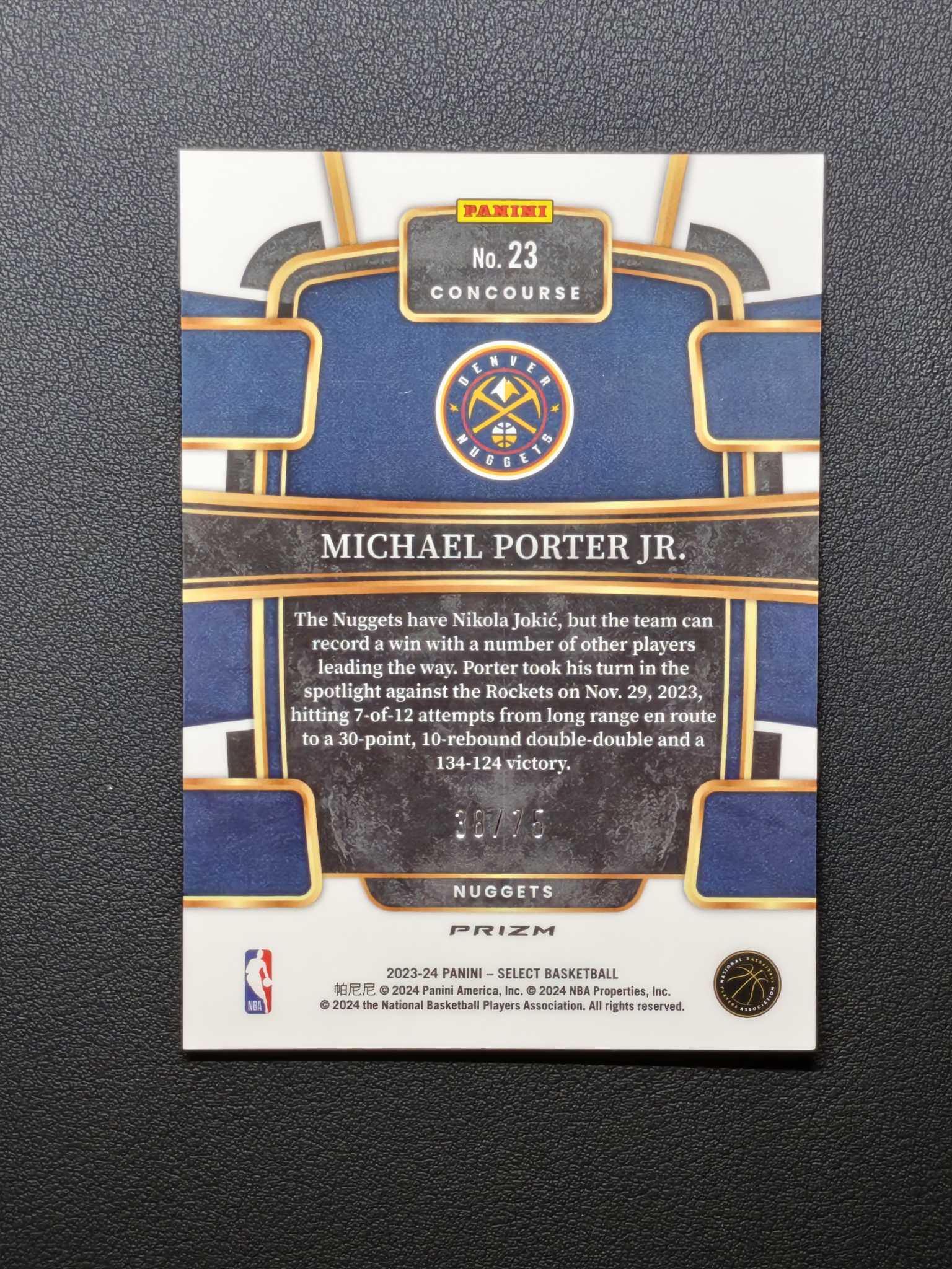 《拍多少回款多少》2023-24 Panini Select Michael Porter Jr. 掘金 迈克尔 波特 一级 白泡泡折 折射 75编 近期大热球星 卡价大涨 一套彩虹在拍 大比例