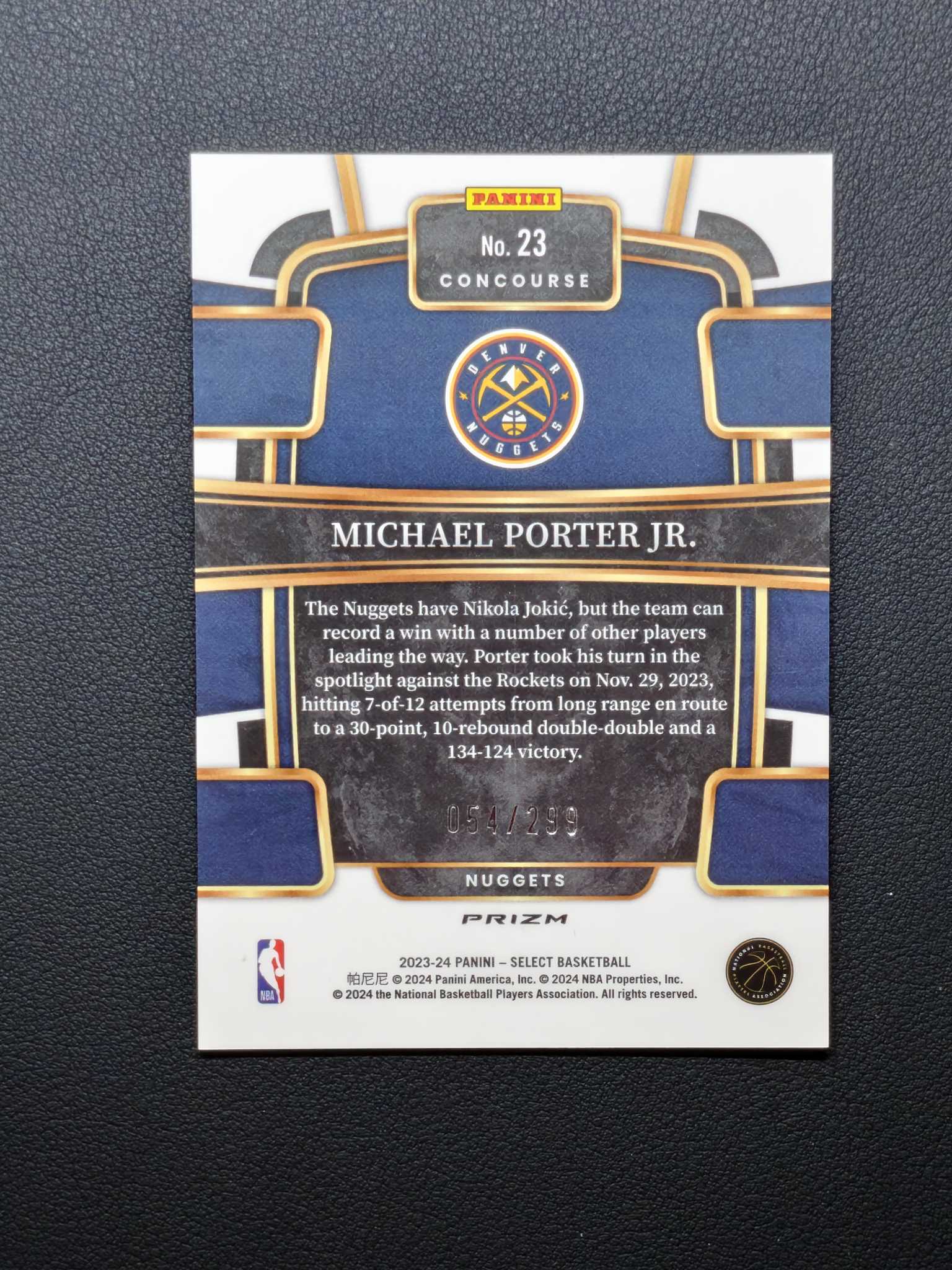 《拍多少回款多少》2023-24 Panini Select Michael Porter Jr. 掘金 迈克尔 波特 一级 天蓝折 折射 299编 近期大热球星 卡价大涨 一套彩虹在拍 大比例