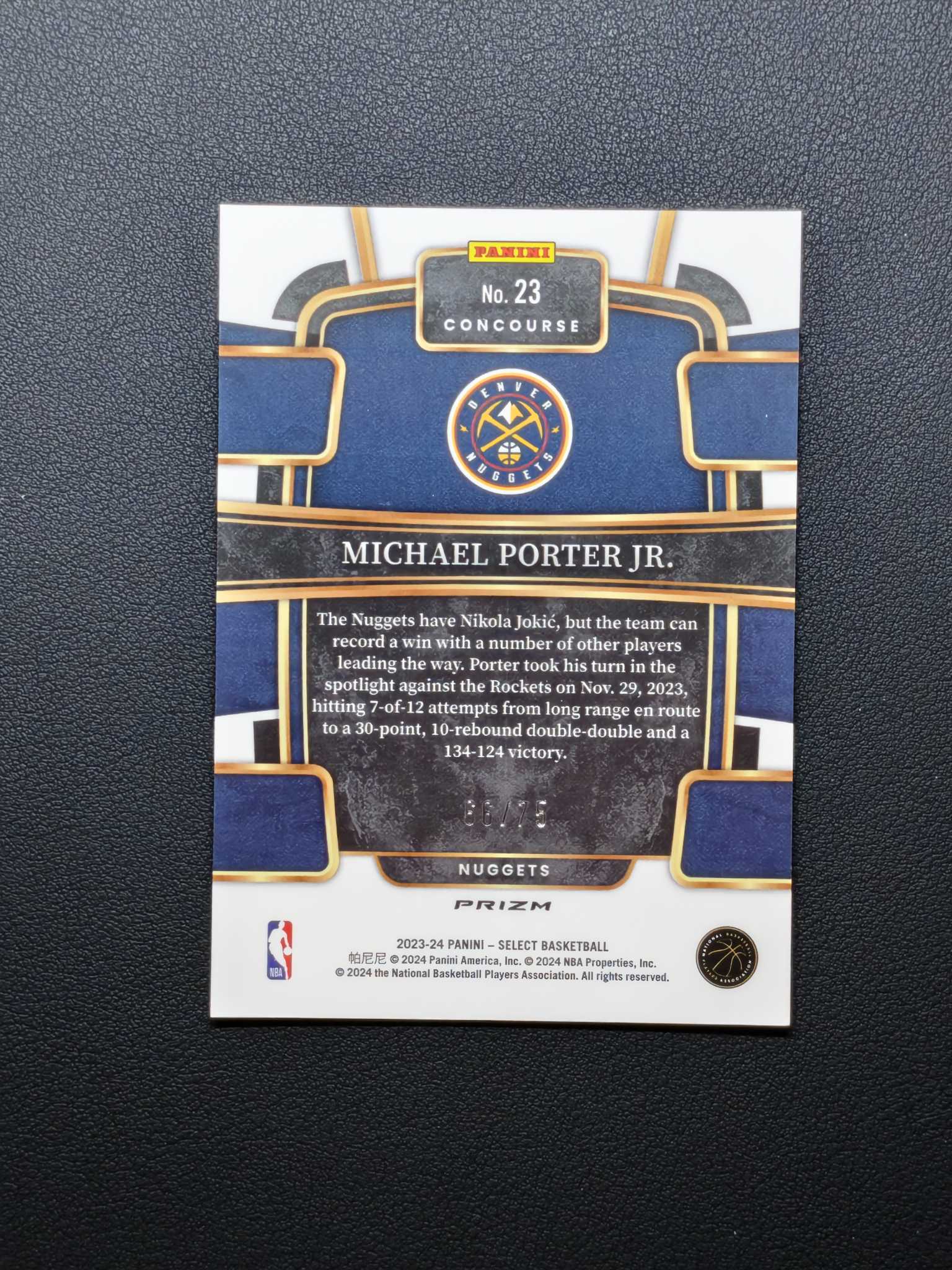 《拍多少回款多少》2023-24 Panini Select Michael Porter Jr. 掘金 迈克尔 波特 一级 青折 绿折 折射 75编 近期大热球星 卡价大涨 一套彩虹在拍 大比例