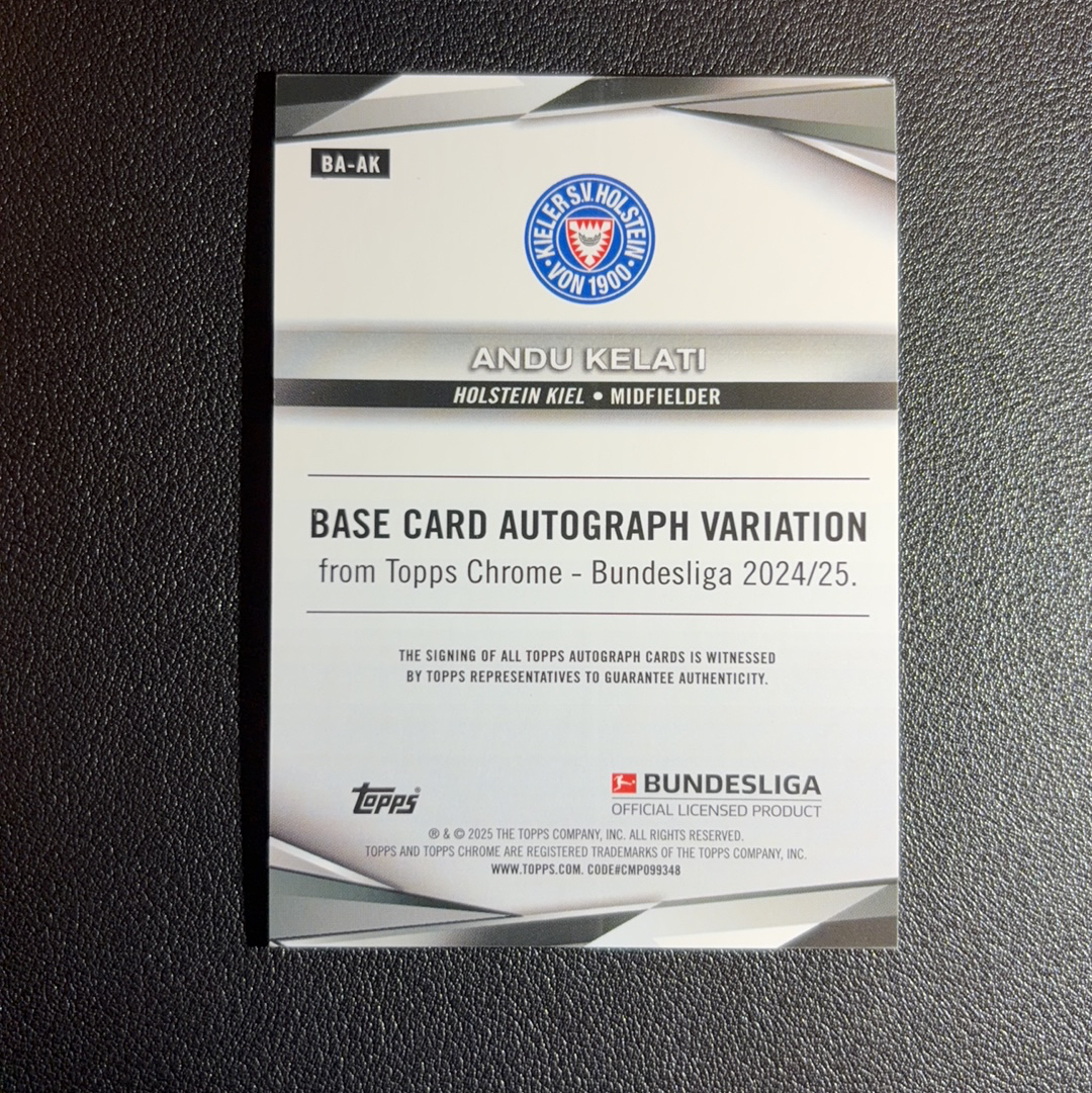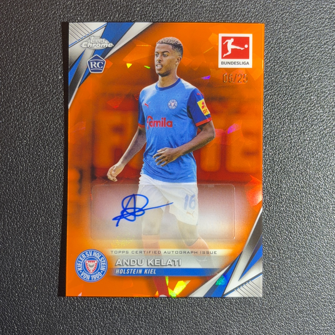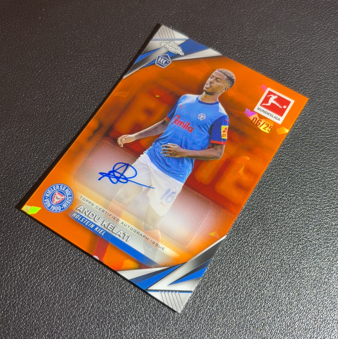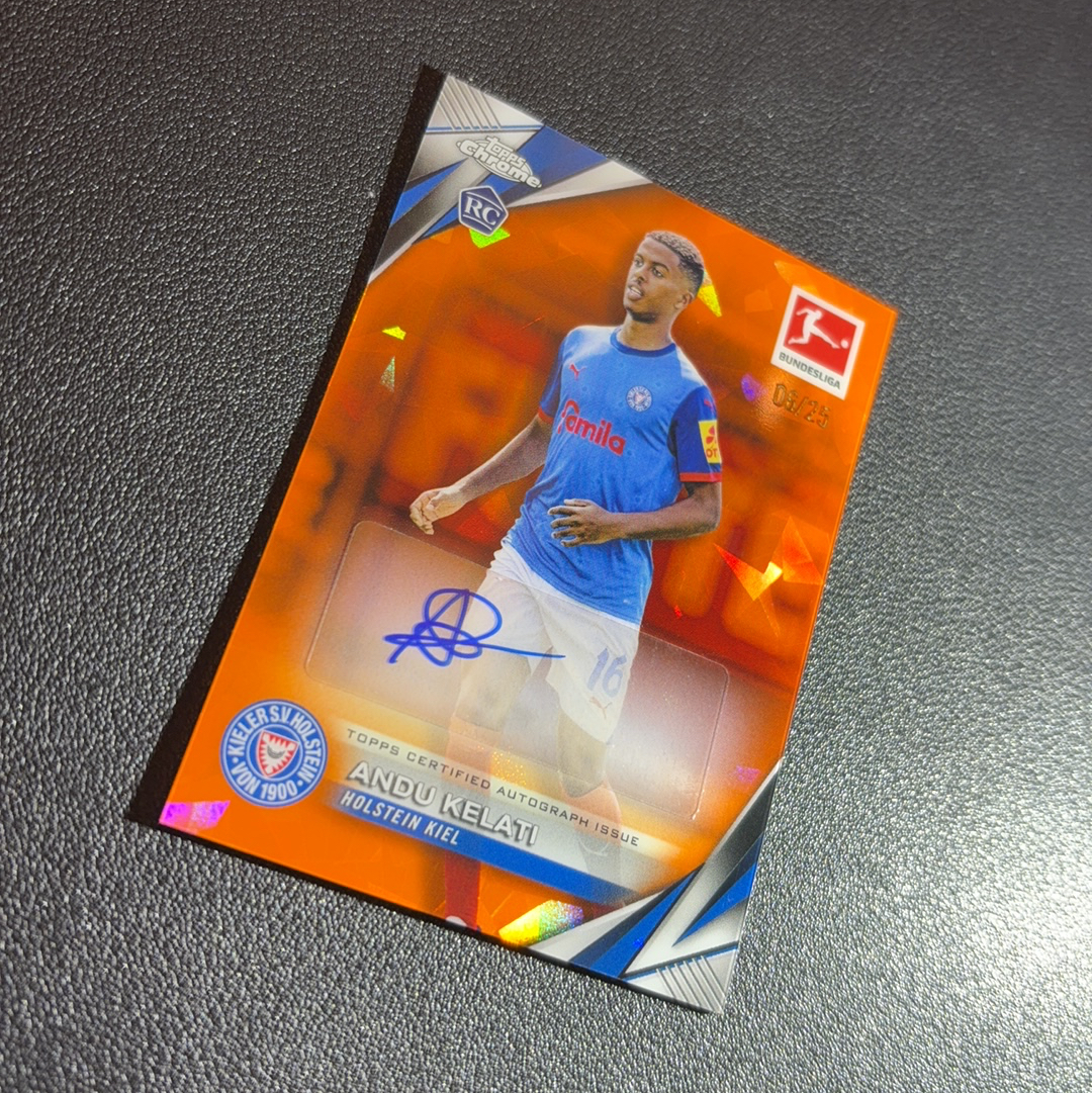 2024-25 Topps Chrome Andu Kelati 德甲 蓝宝石 荷尔斯泰因基尔 新秀RC 安杜克拉提 25编 橙碎冰折射 签字 背面印刷线看图 -SY6476