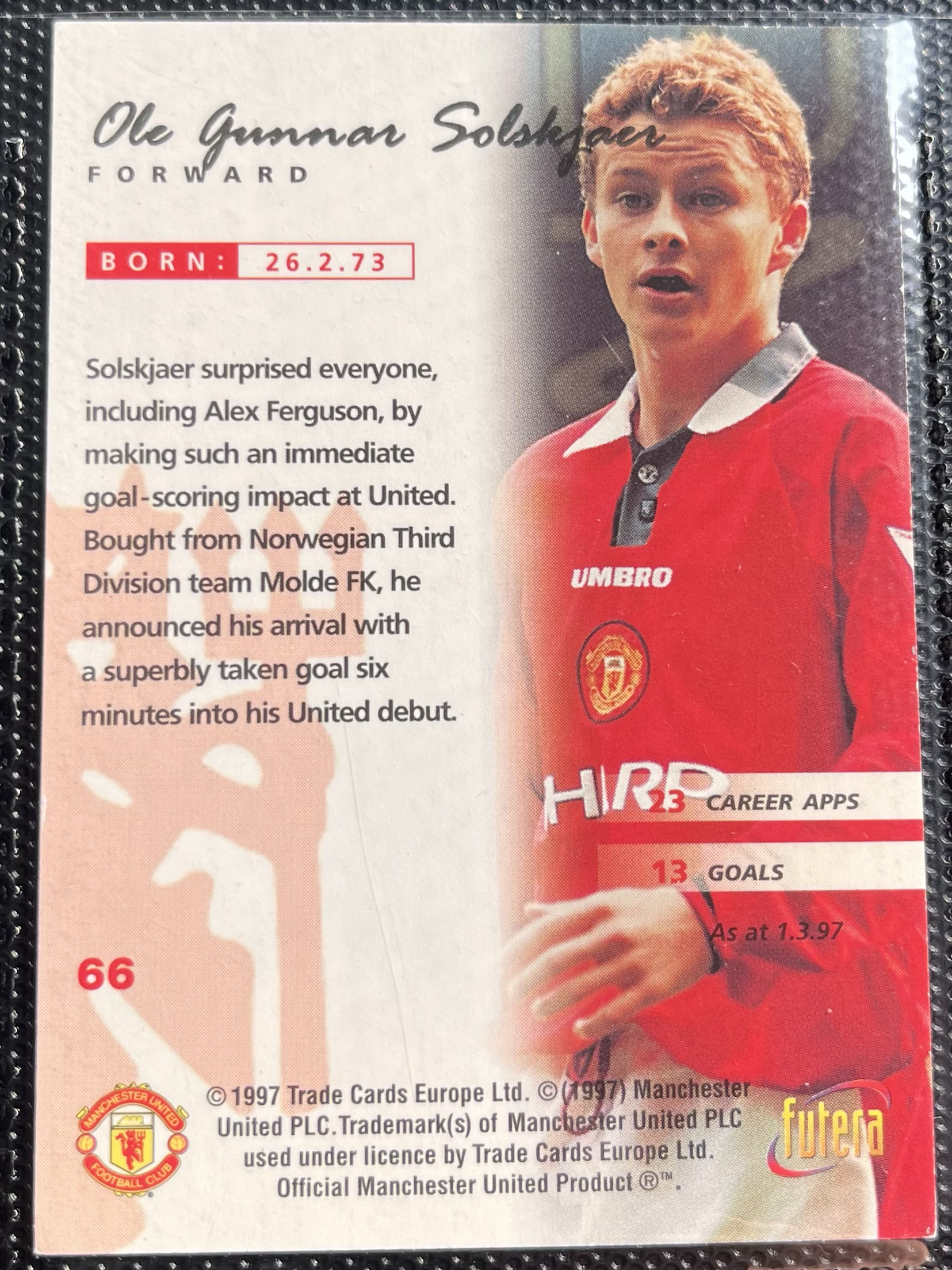 1996 Futera Premier Ole Gunnar Solskjaer 索尔斯科亚 超级替补 曼联传奇 挪威 保真 亲笔 签字 签名 球星卡 品佳