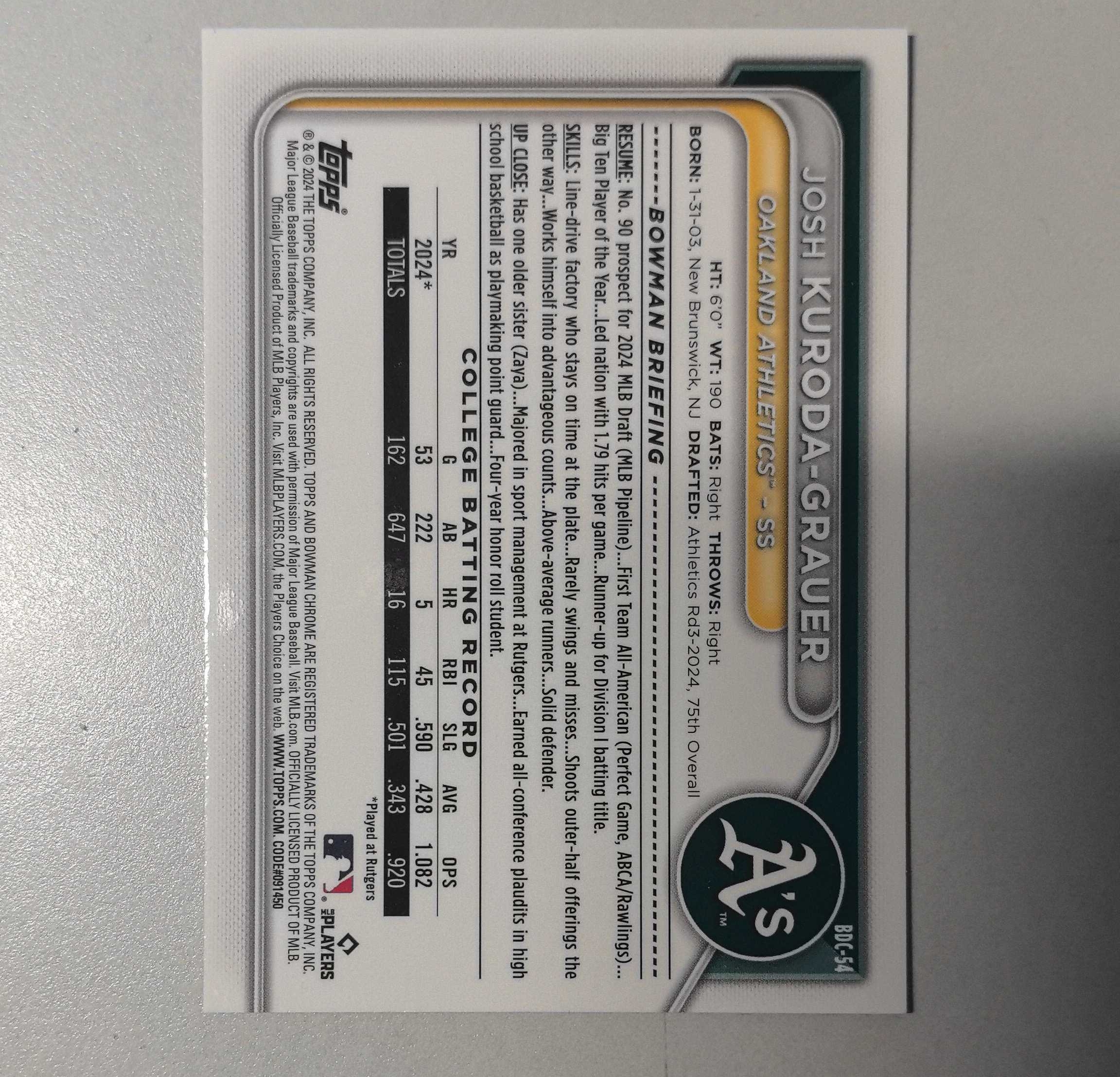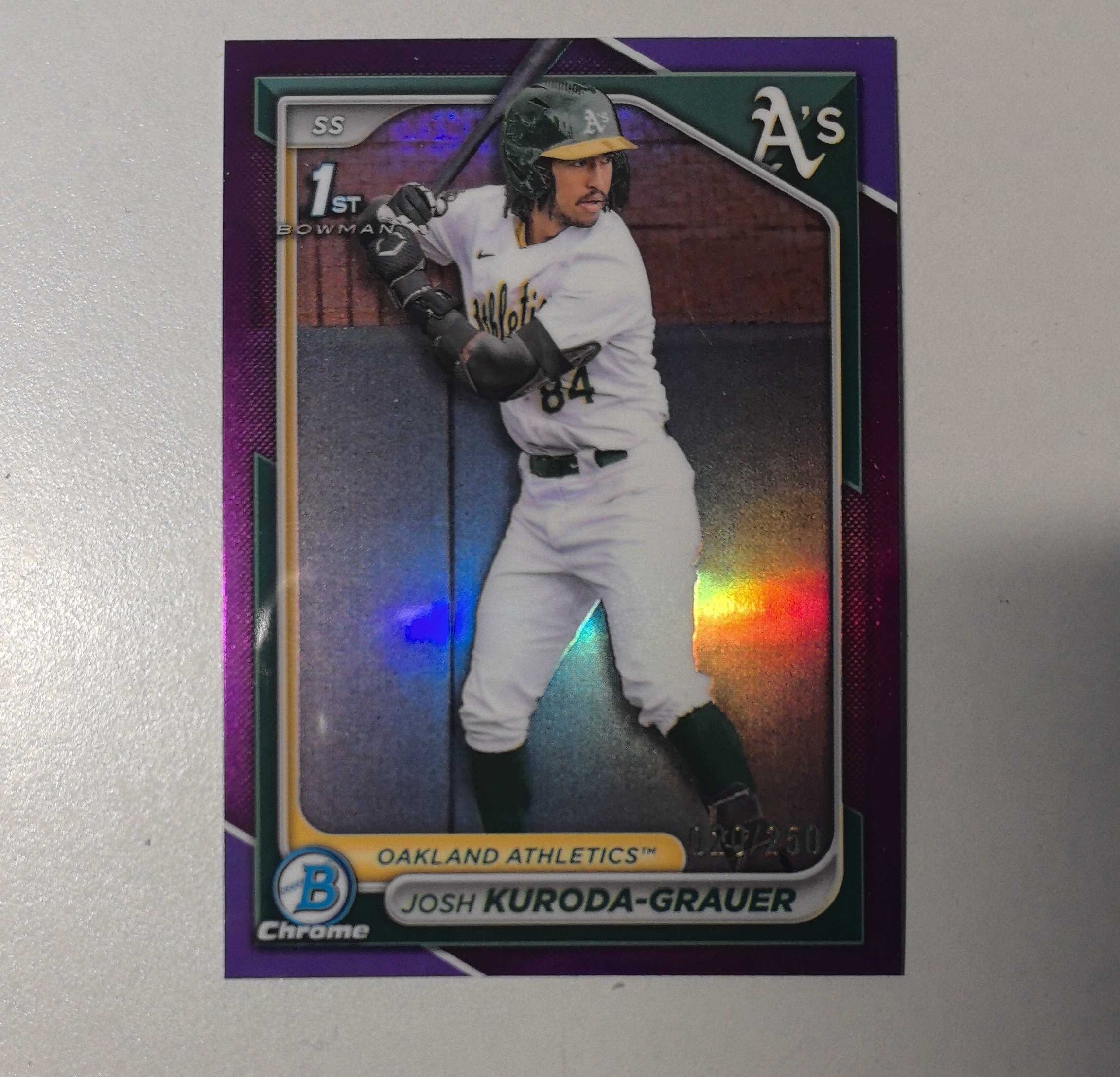 2024 Topps 【锡安代卖】 累计照常 bowman chrome 1st新秀base 紫折250编 奥克兰运动家 Josh kuroda grauer 卡品如图 冉