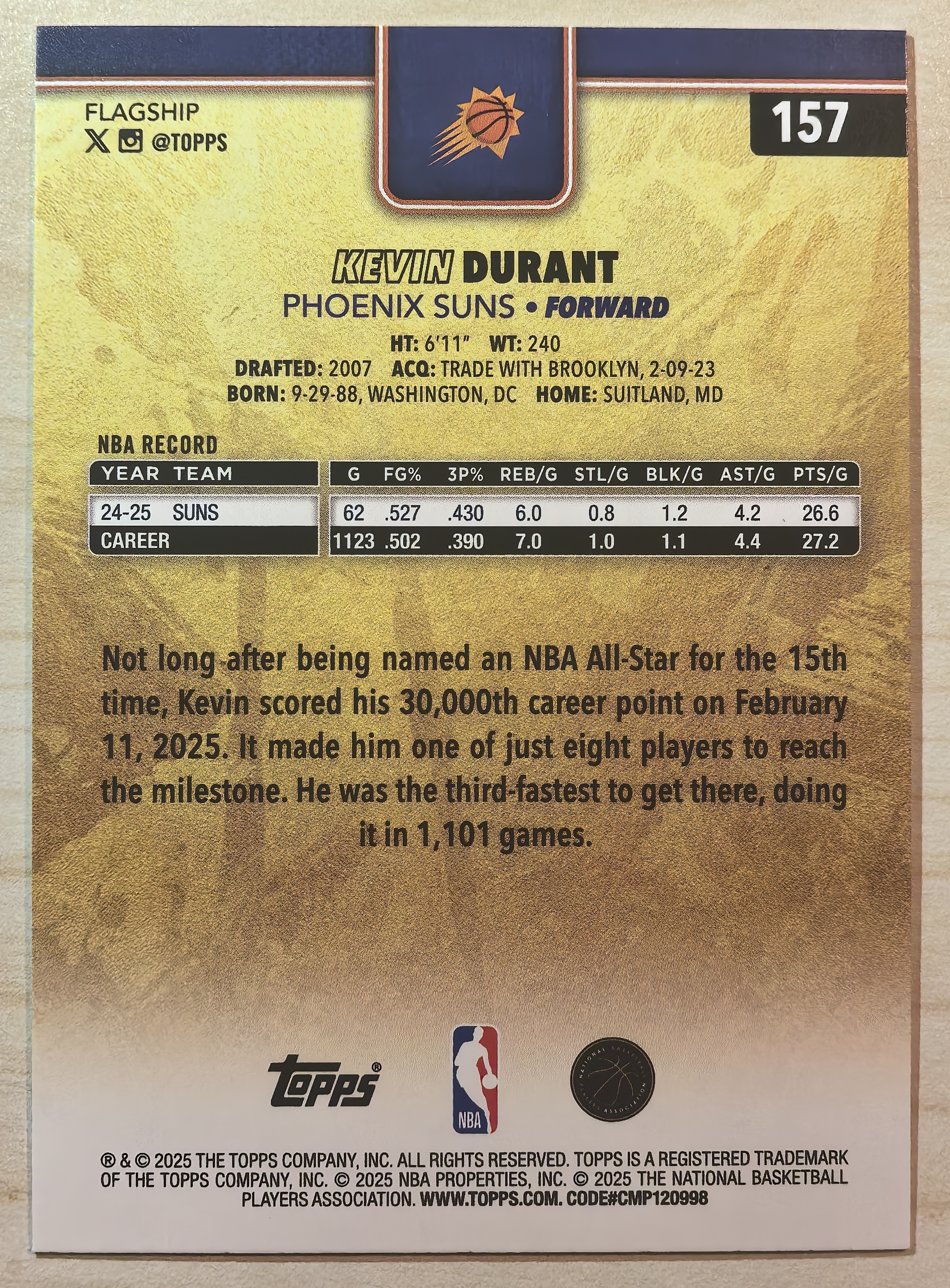 2025 Topps flagship Kevin Durant KD 凯文 杜兰特 死神 太阳队 大比例 SSP 金标 金背 变化版 怒吼选图 超帅 卡品好