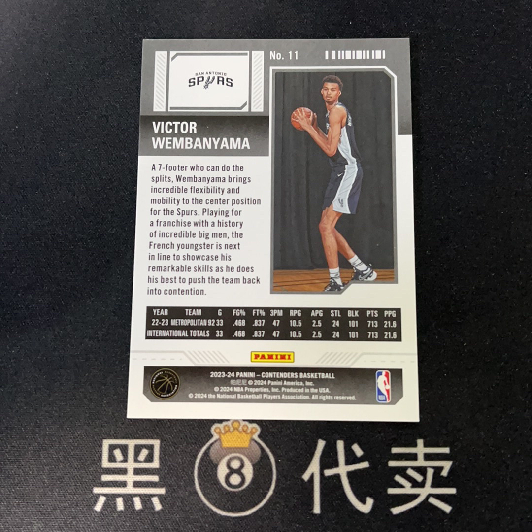 28【黑8代卖】2023-24 Panini Contenders 球票 Victor Wembanyama 维克托 文班亚马 RC 新秀 base 卡品如图【JJ华-28】