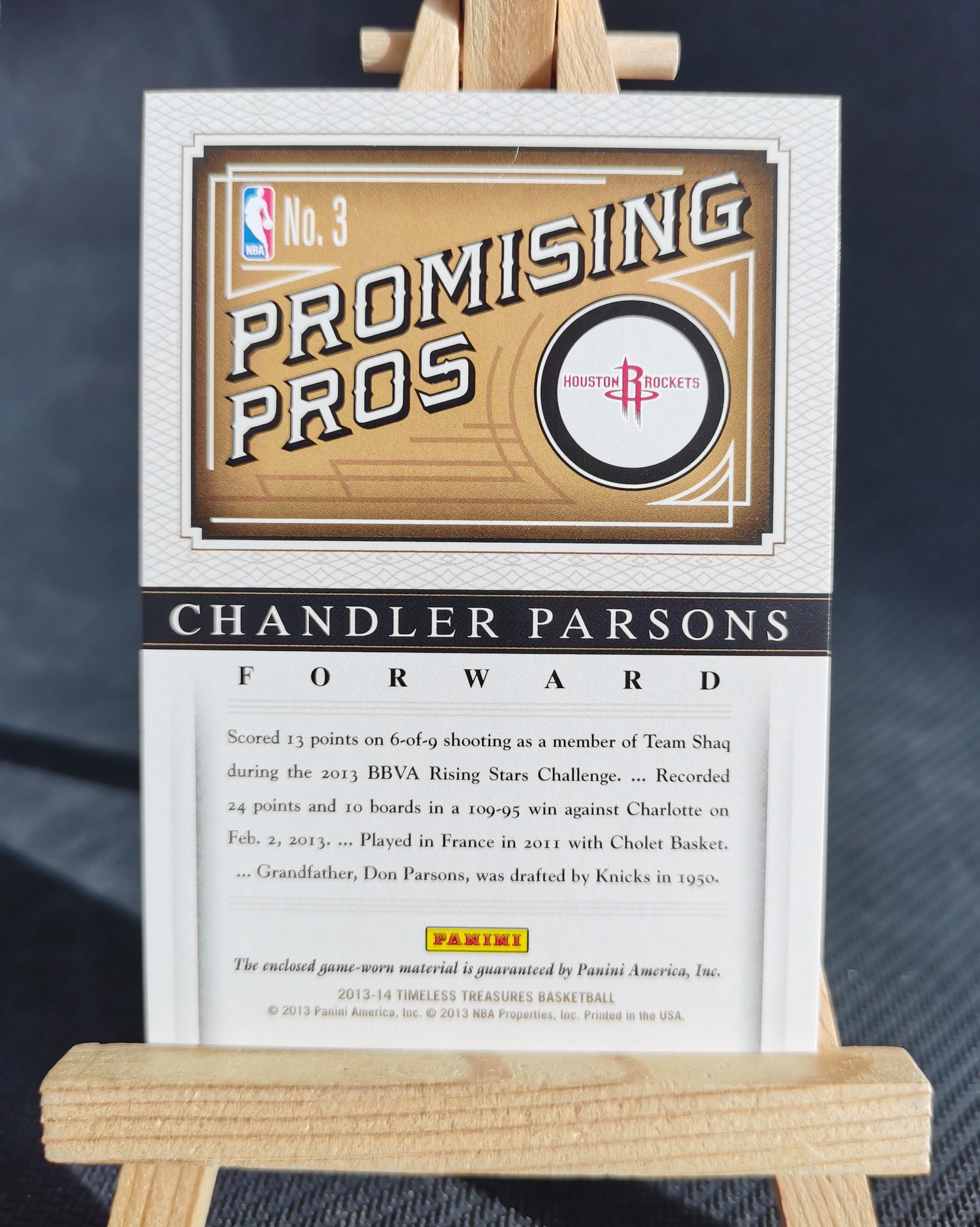 2013-14 Panini Timeless Treasures Chandler Parsons 小铁盒 火箭 钱德勒 帕森斯 大窗落场球衣物料切割 实物切割 落场 球衣 物料